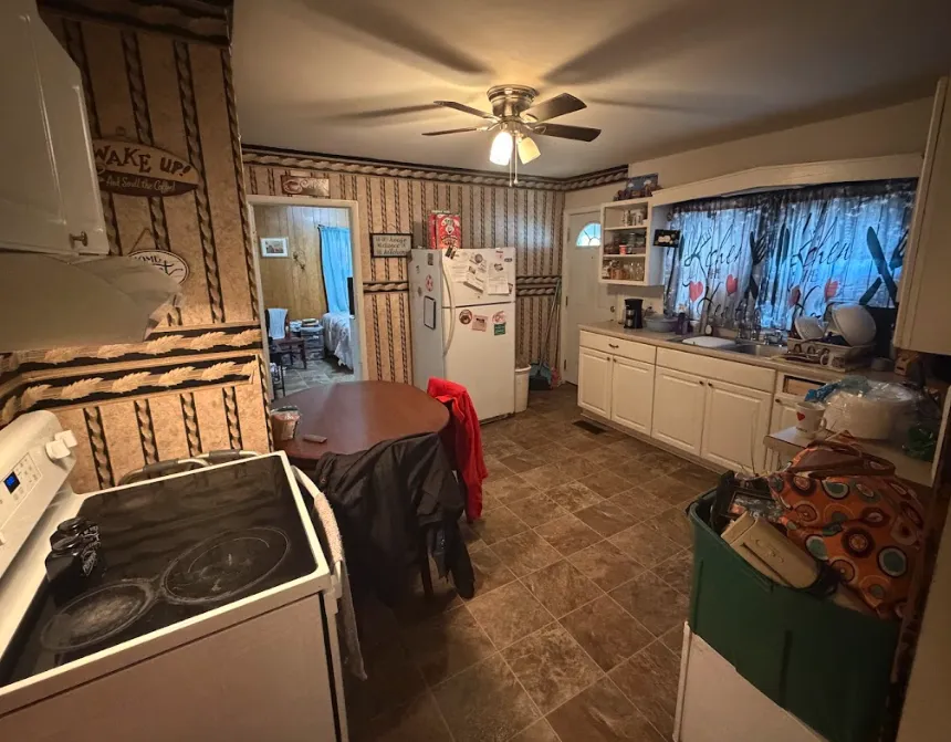 The kitchen needs to be updated, and one of the bathrooms is actively leaking, and needs to be gutted out.